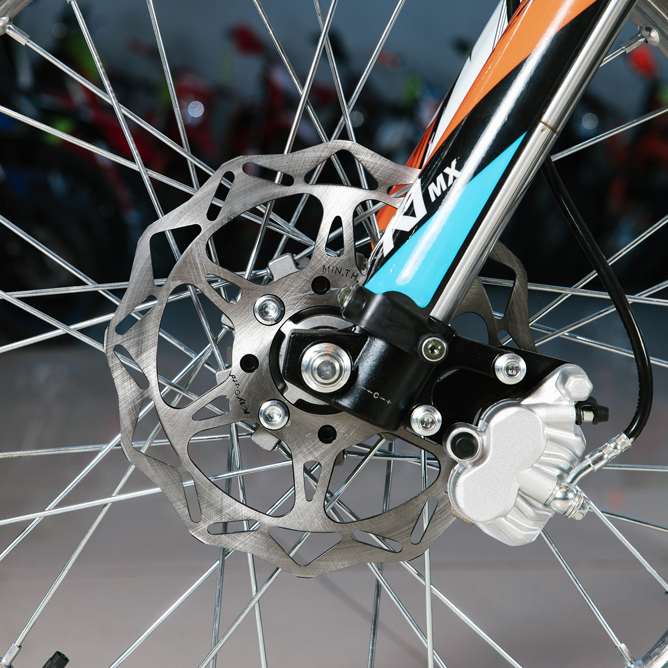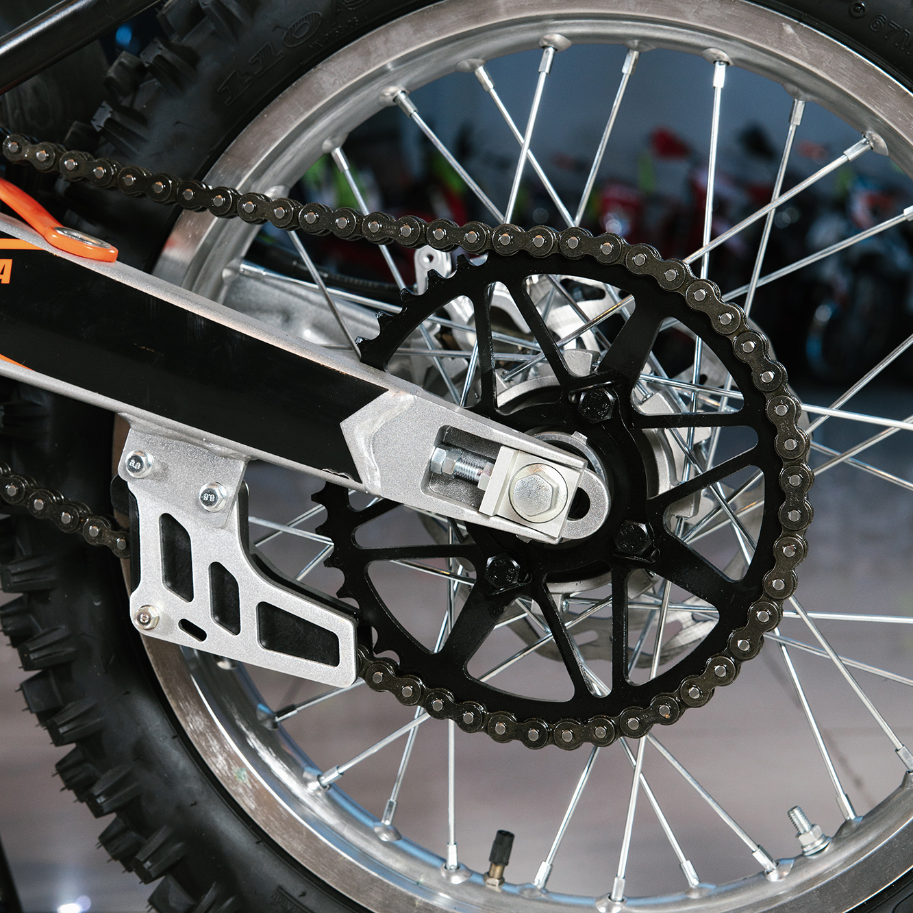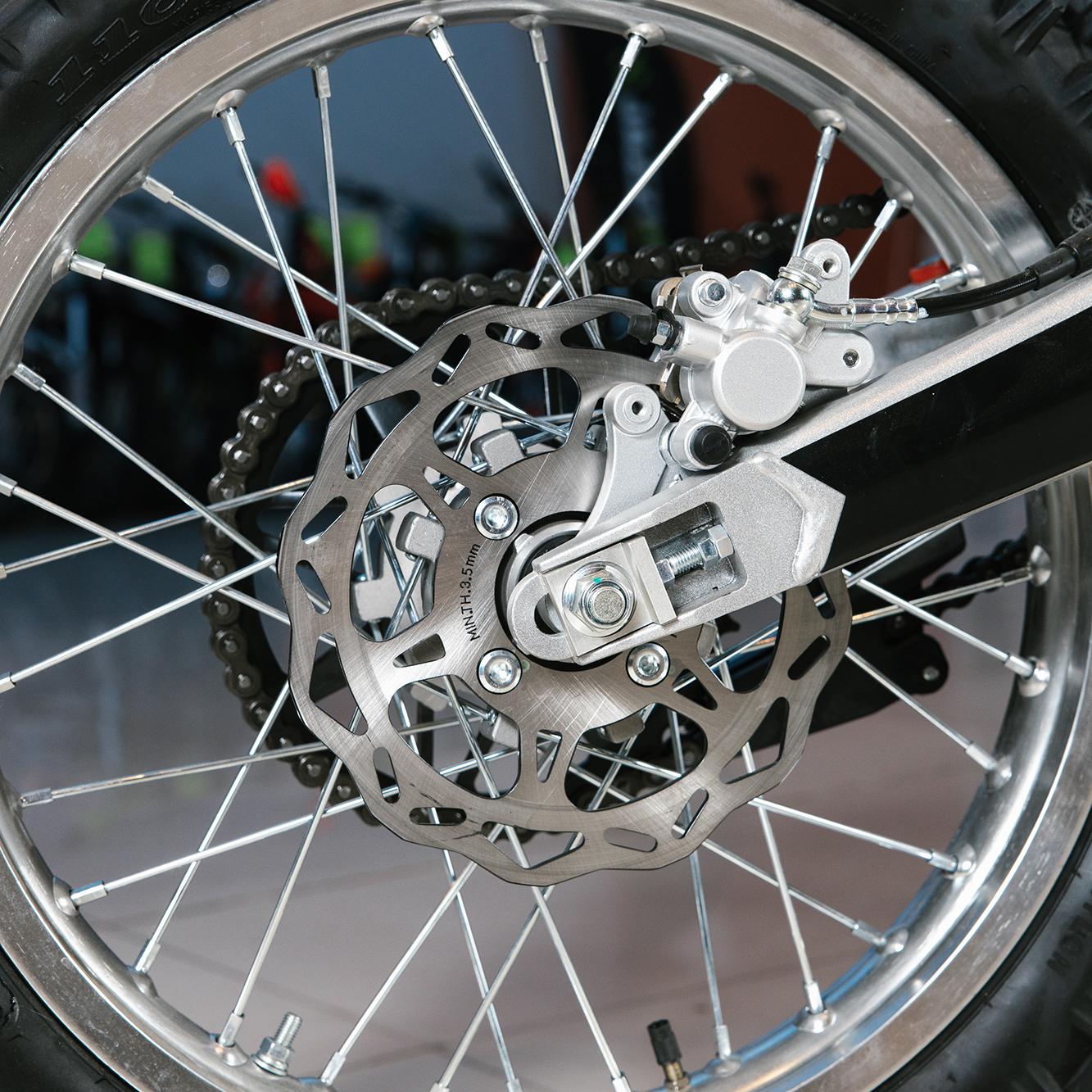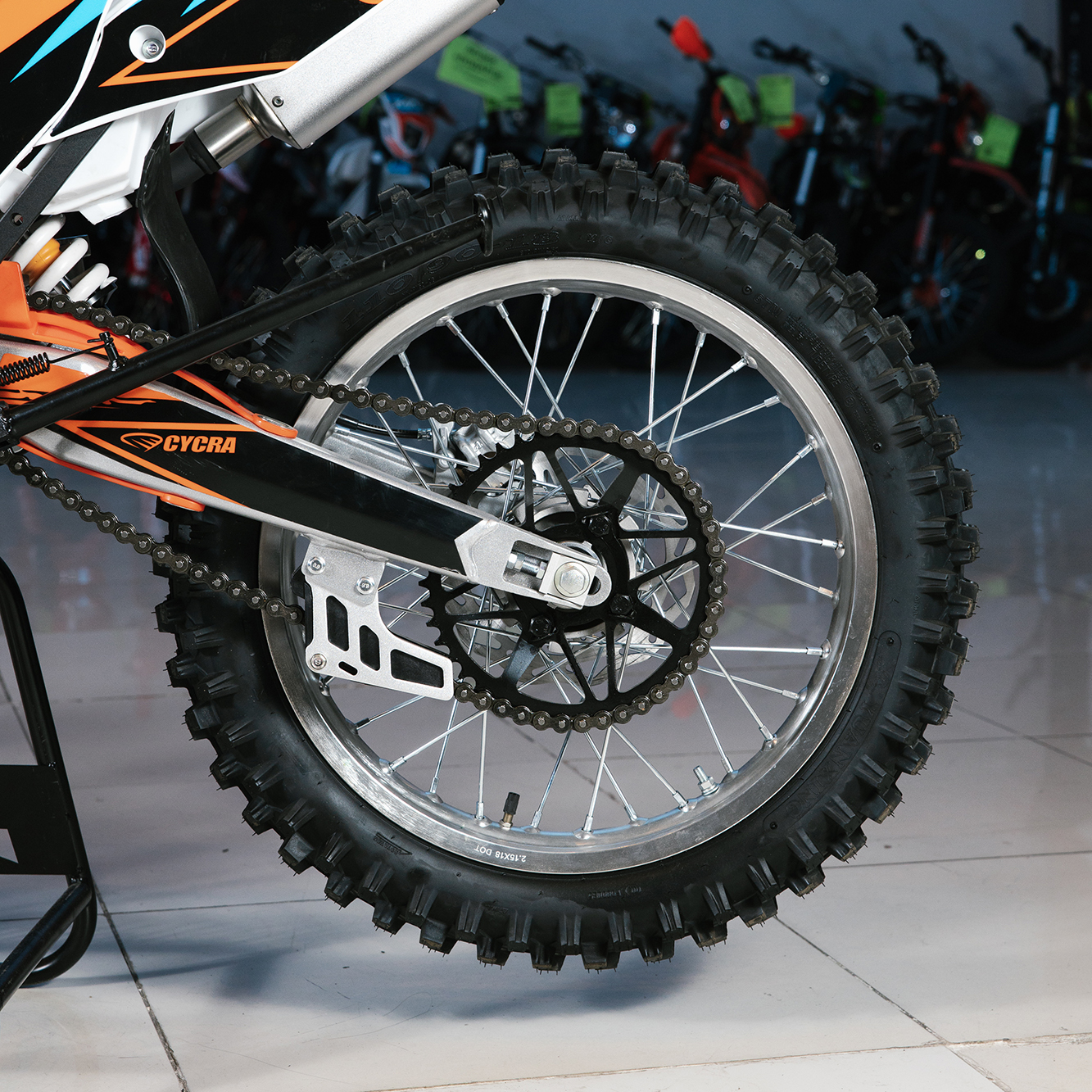 Усиленная рама из хром-молибденового сплава и подвеска позволяют эффективно амортизировать удары при езде по неровностям и препятствиям на трассе. Передняя подвеска телескопическая вилка перевёрнутого типа от фирмы KKE длиной 800 мм, задняя — нерегулируемый моноамортизатор 360 мм, рассчитанный на высокие нагрузки до 900 LBS, также произведённый компанией KKE. Мотоцикл оснащён классическими спицованными колёсами диаметром 18 и 21 дюйм. Колёса имеют усиленные обода из алюминиевого сплава и буксаторы. Эффективное и безопасное замедление с любых скоростей обеспечивают гидравлические дисковые тормоза.