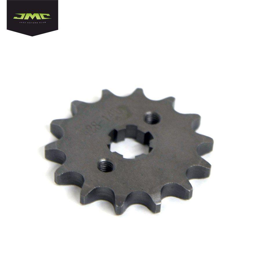 Звезда ведущая под 420 цепь. Подходит на валы двигателей питбайков и мотоциклов c диаметром вала ведущей звезды 20,00 мм. Количество отверстий под крепление - 2, с расстоянием между центрами крепежных отверстий - 34,00 мм. Число зубьев звезды - 14. Внешний диаметр звезды 61,00 мм. Толщина звезды - 6,00 мм. Материал - сталь.